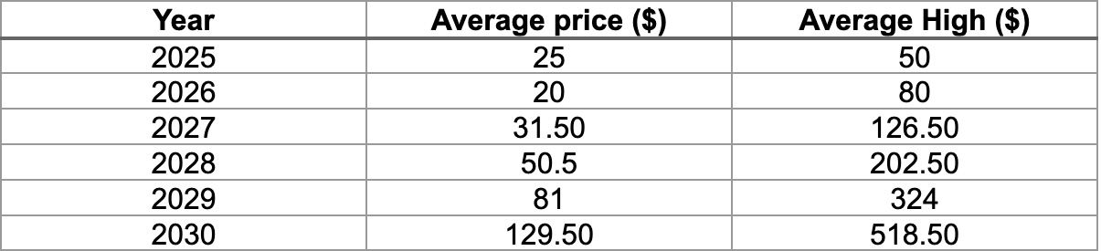 下表总结了2025年至2030年AVAX的价格预测,清晰展示了潜在的价格走势: