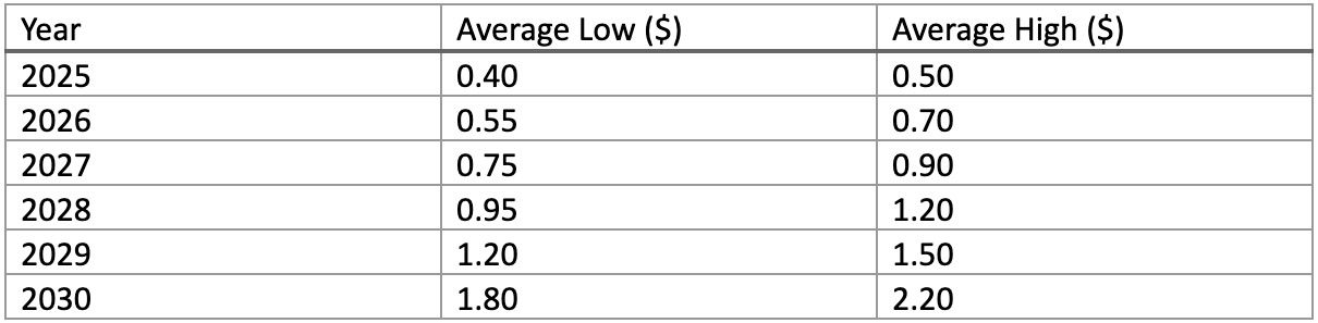 UNFI 价格预测表(2025-2030)