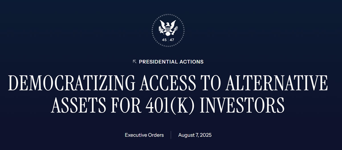 这项名为"为401(k)投资者民主化另类资产准入"的命令指示美国金融监管机构扩大401(k)计划中对加密货币和私人公司的投资准入。
