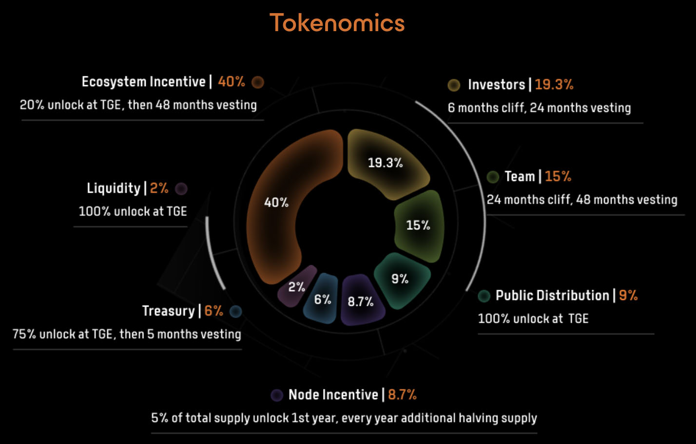 ● 生态系统激励:40%(有具体的归属计划)