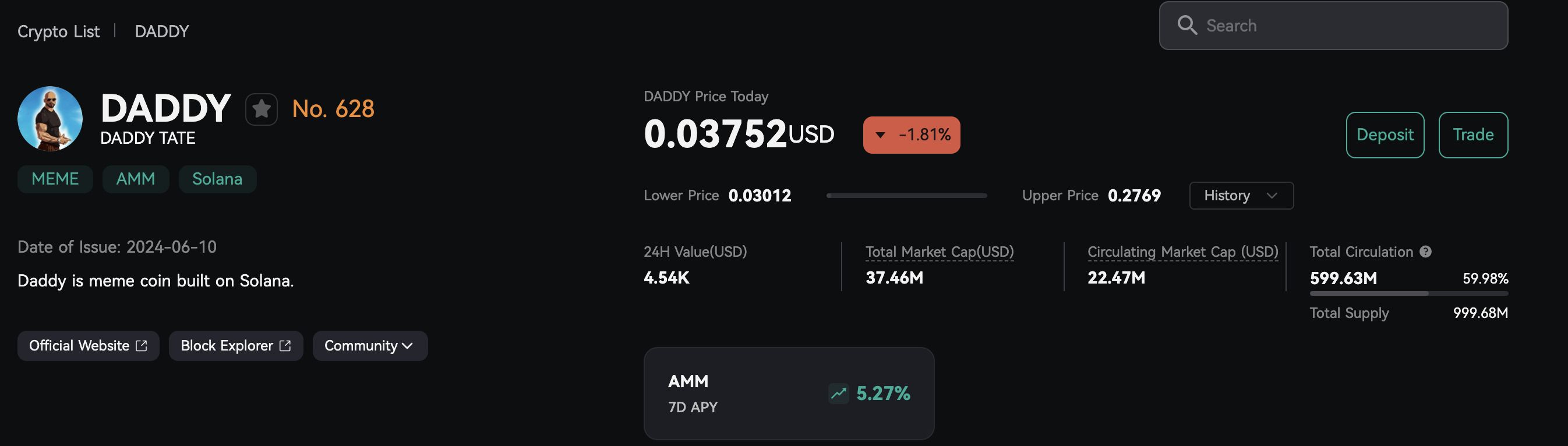 - 流通供应量:5.9963亿DADDY