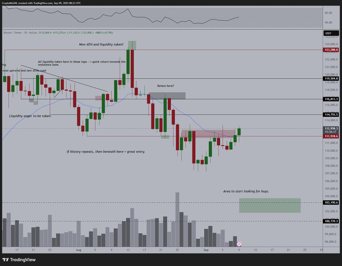另一位交易员Crypto Tony表示,113,000美元是合适的入场点。