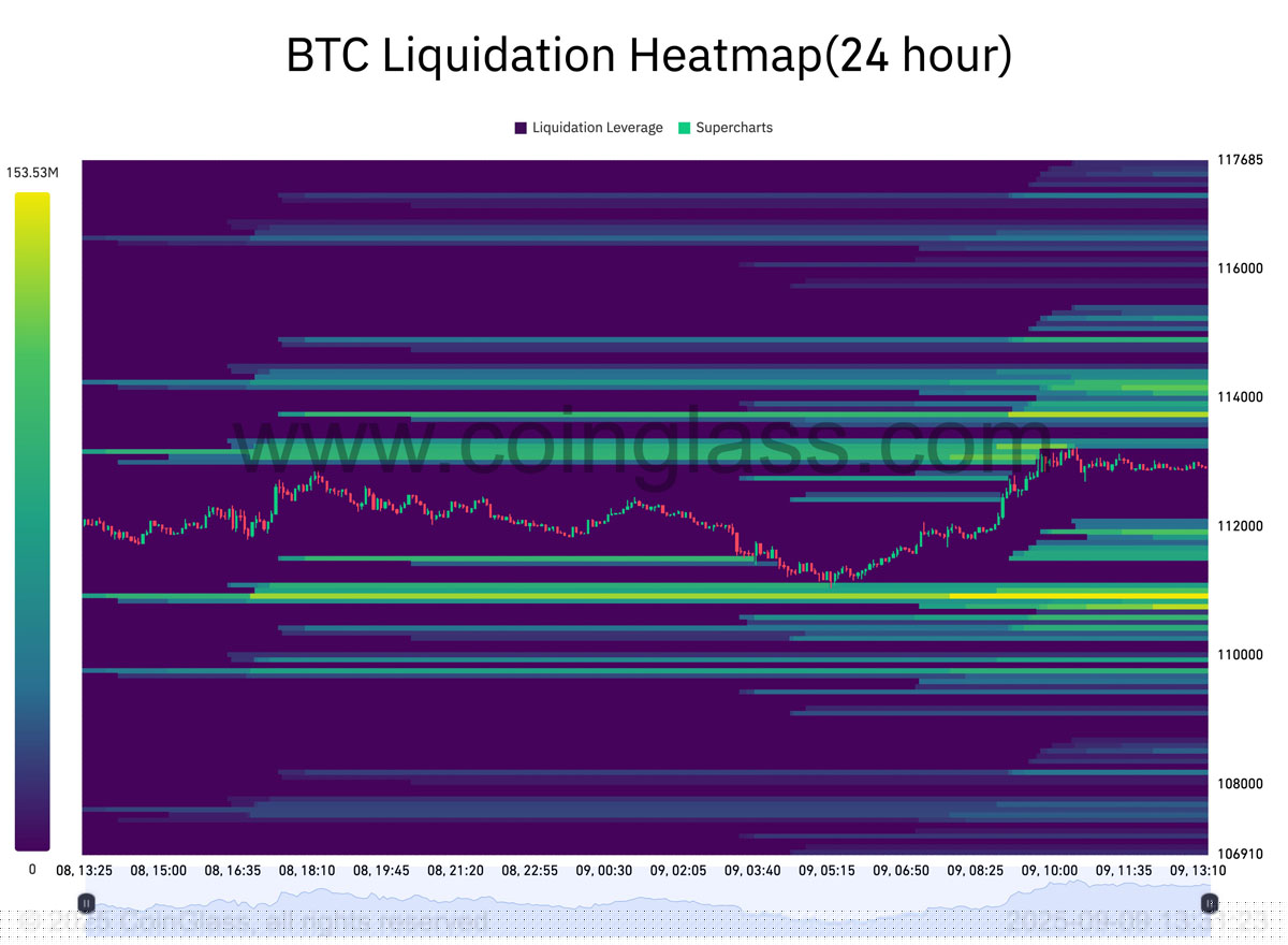 同时,加密交易所订单簿流动性数据显示,价格上方至114,500美元有大量卖单。