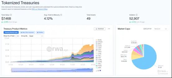 看似私人信贷位于首位,但实则仅链上房贷Figure一家在私人信贷中的规模就达到155亿美元,但其仅仅是将内核产品HELOC 抵押贷款后在Provenance链上记录交易,严格意义上而言,仅仅是将数据上链,并非纯正的RWA企业。因此,在RWA领域,最吸睛的赛道,仍然是美国国债。