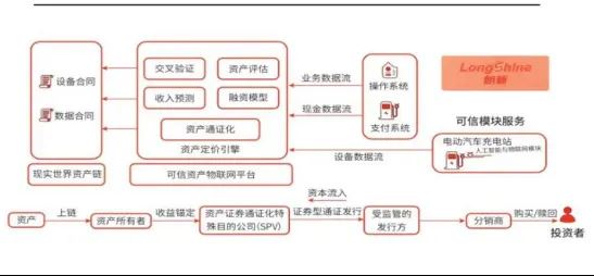 若将视野从海外转至国内,标的构成产生了变化。中国RWA实践仍处于非常初期的阶段,产业链条仍在不断完善,路径发展主要聚焦实体经济赋能,目前在金融资产、实物资产、贸易融资、供应链溯源以及文化遗产保护与旅游方向均有落地,典型案例有朗新集团充电桩资产项目、协鑫能科光伏资产项目、绿能换电资产项目、马陆葡萄农产品项目、绿地金创房地产项目等等。以蚂蚁数科与朗新科技合作的国内首个充电桩资产RWA项目为例,该项目依托协鑫能科旗下的9000部充电桩资产,成功以代币化形式融资1亿元人民币。