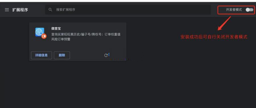 添加成功后即可在浏览器插件栏看到微查宝的插件,再进入淘宝店铺的卖家中心,点击微查宝的插件就可以看到“检测店铺降权号”,可以一键检测店铺降权号并标记。