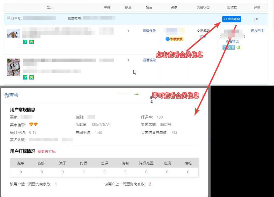 微查宝是专门为卖家设计的一款甄别买家信誉的浏览器插件,方便、简洁、好用,只需安装即可标识用户,侦探用户的购买行为。功能识别主要分为恶意打假、抽检、黑号、爱给差评、恶意退款、降权、违规等。一旦被纳入微查宝的买家征信平台,卖家在销售推广产品的时候就可以识别哪些买家是不是真心买家,避免给卖家造成名誉上的损失。