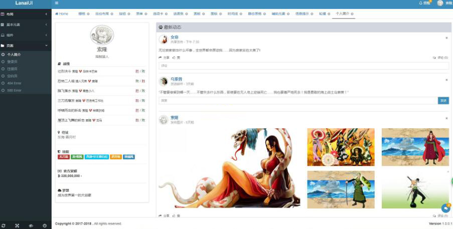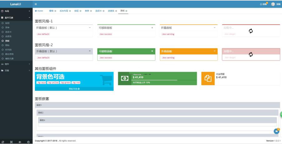 Lanai-ui是基于AdminLTE的二次开发,目的是减少后端开发人员对前端的依赖。样式基于Bootstrap3、脚本基于JQuery。适合CMS,CRM等后台框架。