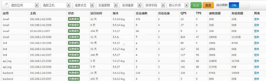 MySQL MTOP持续监视MySQL的基本状态和性能信息,包括数据库连接状态,启动时间,数据库版本,总连接数,活动进程,QPS,TPS,