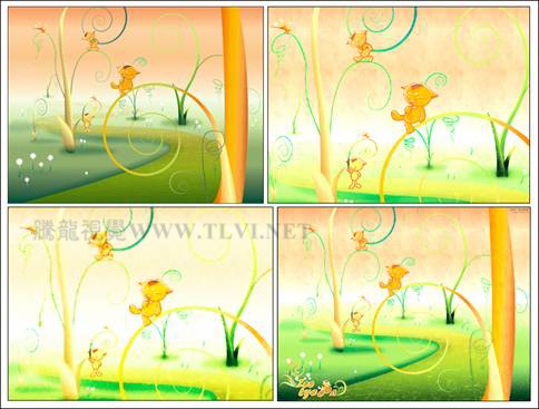 (13)将小花图形群组,并再制多个,参照图10-47所示分别调整其位置与大小。接着执行“文件”→“导入”命令,导入本书附带光盘\Chapter-10\“动物.cdr”文件,按下<Ctrl+U>键取消组合,分别调整其大小与位置。