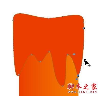 然后使用"贝塞尔工具"在矩形顶部绘制出蜡油的形状,再使用形状工具进行调节,如图所示:
