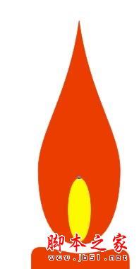 ,再对它进行内部和线条颜色的统一填充(我填的是红色),再来做内焰,使用"椭圆工具"绘制一个小点的椭圆形,对它的内部和线条都填充黄色,如图所示: