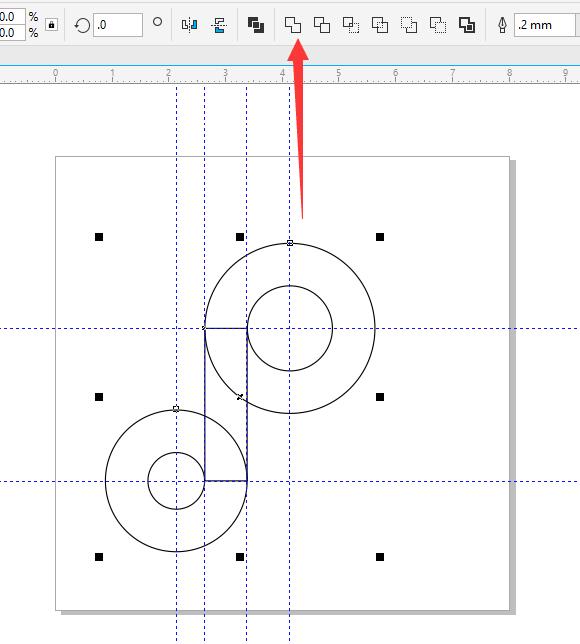 为什么要改成1cm是因为上下两个圆中间的距离以及后面连线的距离是要一样宽的。