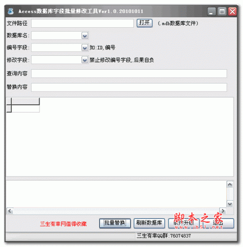 Access数据库字段批量修改工具是一款对access数据库进行批量修改字段的工具,主要可以帮助用户快速方便的对access数据库字段内容进行替换,可以解决Microsoft Office Access 不能替换个别字符的问题。欢迎下载使用!