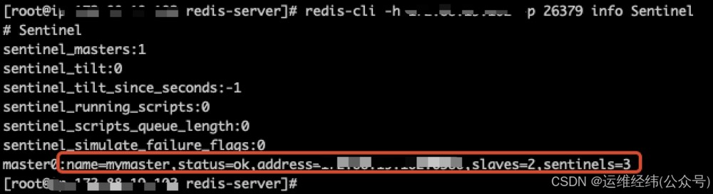 redis-cli -h 172.88.19.102 -p 26379 info Sentinel