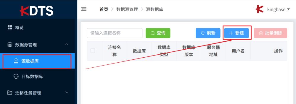 点击"数据源管理" → “源数据库” → “+ 新建”