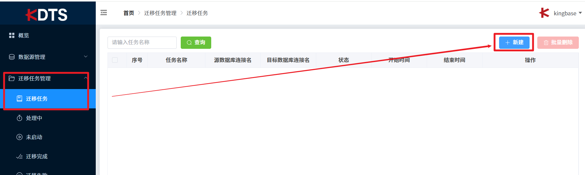 点击"迁移任务管理" → “迁移任务” → “+ 新建”
