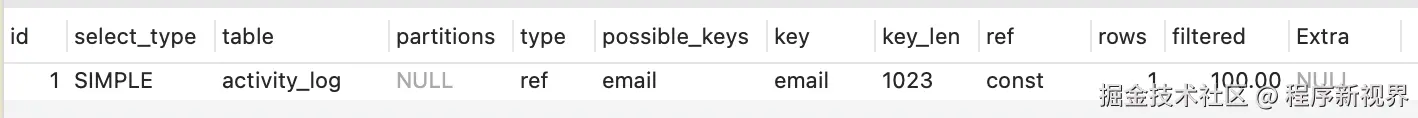 mysql> EXPLAIN SELECT * FROM activity_log WHERE email = 'little.bobby@tables.com';