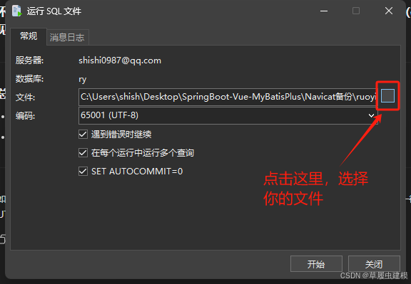 - 文件:点击右侧“...”选择你的 SQL 文件(如