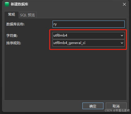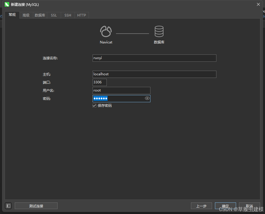填写数据库名(如 ry