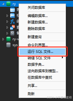 右键数据库名,选择运行 SQL 文件...”。