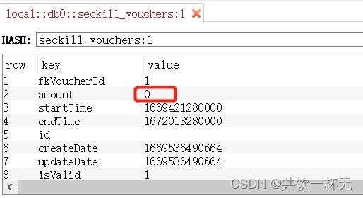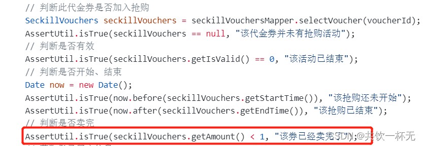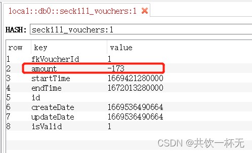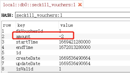 long count = redisTemplate.opsForHash().increment(key, "amount", -1); AssertUtil.isTrue(count <= 0, "该券已经卖完了");