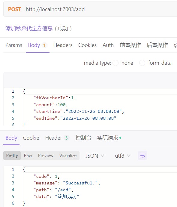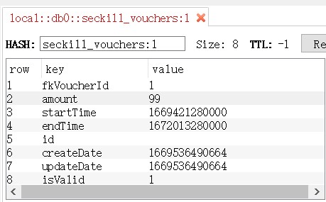 执行测试,新建秒杀代金券活动存储到Redis中: