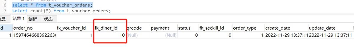 // 下单 VoucherOrders voucherOrders = new VoucherOrders(); voucherOrders.setFkDinerId(dinerInfo.getId()); //redis中不需要维护该外键信息 // voucherOrders.setFkSeckillId(seckillVouchers.getId()); voucherOrders.setFkVoucherId(seckillVouchers.getFkVoucherId()); String orderNo = IdUtil.getSnowflake(1, 1).nextIdStr(); voucherOrders.setOrderNo(orderNo); voucherOrders.setOrderType(1); voucherOrders.setStatus(0); count = voucherOrdersMapper.save(voucherOrders);