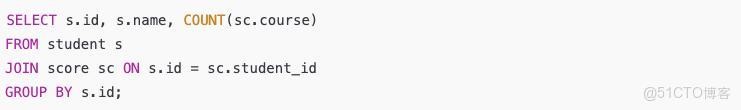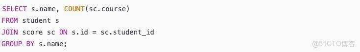 假设我们有学生表和成绩表,需要统计每个学生选课数。