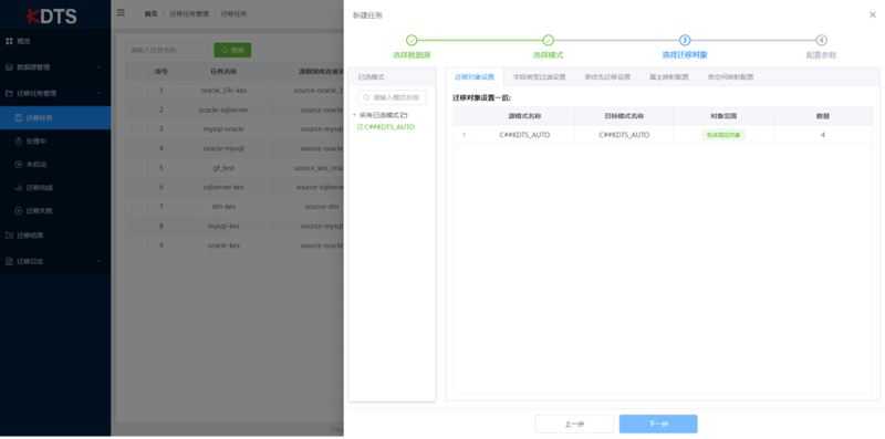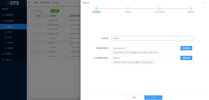 KDTS 采用向导页的方式指导用户新建迁移任务,简单易用,用户依次配置“选择数据源”-“选择模