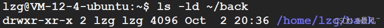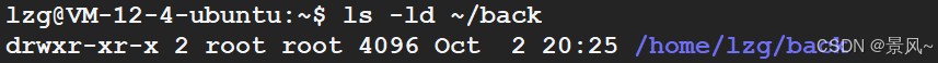 back的拥有者和所属组都是root,后面重定向时用户无法读写该目录所以要修改权限