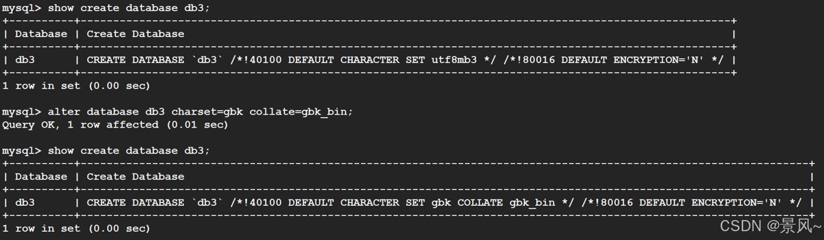 说明: 对数据库的修改主要指的是修改数据库的字符集,校验规则