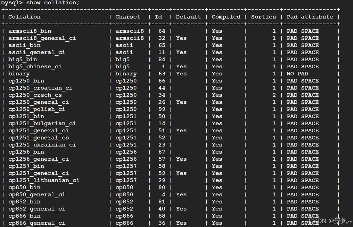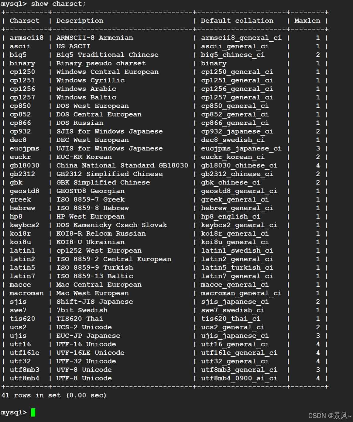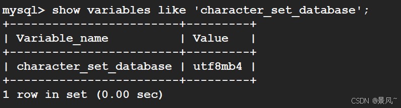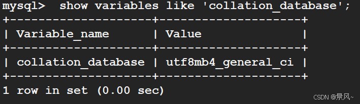 注意: 如果是在指定数据库下使用该SQL,则查看的是该数据库对应的字符集。