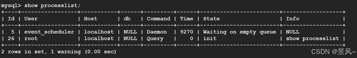 - Id列:一个标识,可以在MySQL中通过kill id杀死指定id的线程。