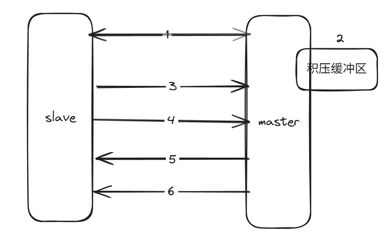 6.主节点将在生成rdb到接收完成期间执行的写命令,在缓冲区中,等到从节点把RDB文件保存完之后,主节点再将缓冲区内的数据补发给从节点。补发的数据扔然按照RDB的二进制格式追加写入到已经接收到的rdb文件中,保持主从一致性。