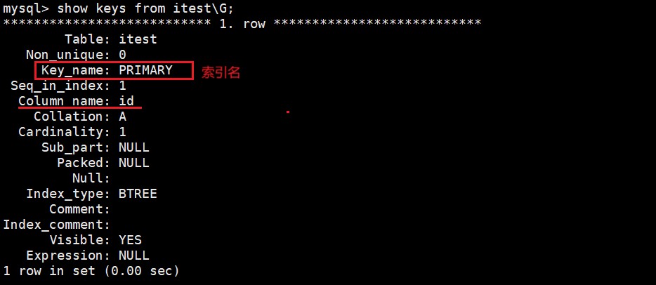 show keys from 表名; show index from 表名;