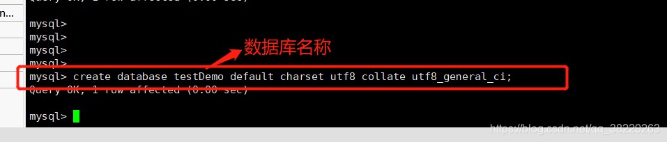create database testDemo default charset utf8 collate utf8_general_ci;