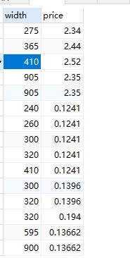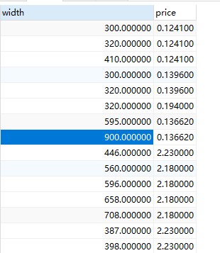 select 0+CAST(width AS CHAR),0+CAST(price AS CHAR) from test1