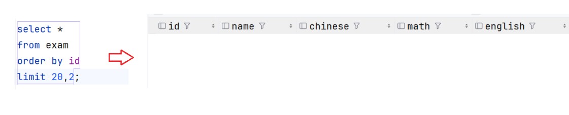 如果说指定的起始位置超出了整个表的范围就会返回一个空的结果集