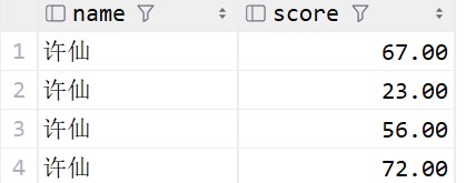 找出许仙的成绩: