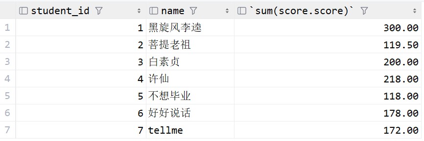 之后,由于求的是每个同学的总分,所以还需要按照student_id进行分组,再精简字段