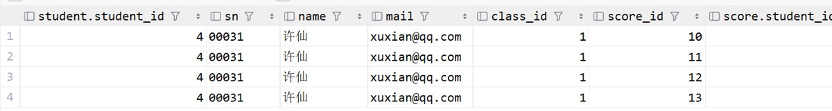 select * from student, score where student.student_id = score.student_id and name = '许仙';