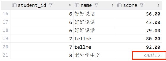 这时就可以使用左连接,把student表作为基准表