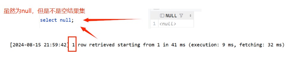 对于上面的SQL语句,虽然exists中返回的是 null ,但不是空结果集,所以还会执行外层查询