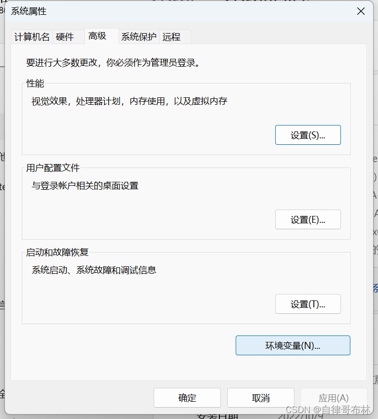 步骤3:打开【系统属性】对话框,选择【高级】选项卡,然 后单击【环境变量】按钮。