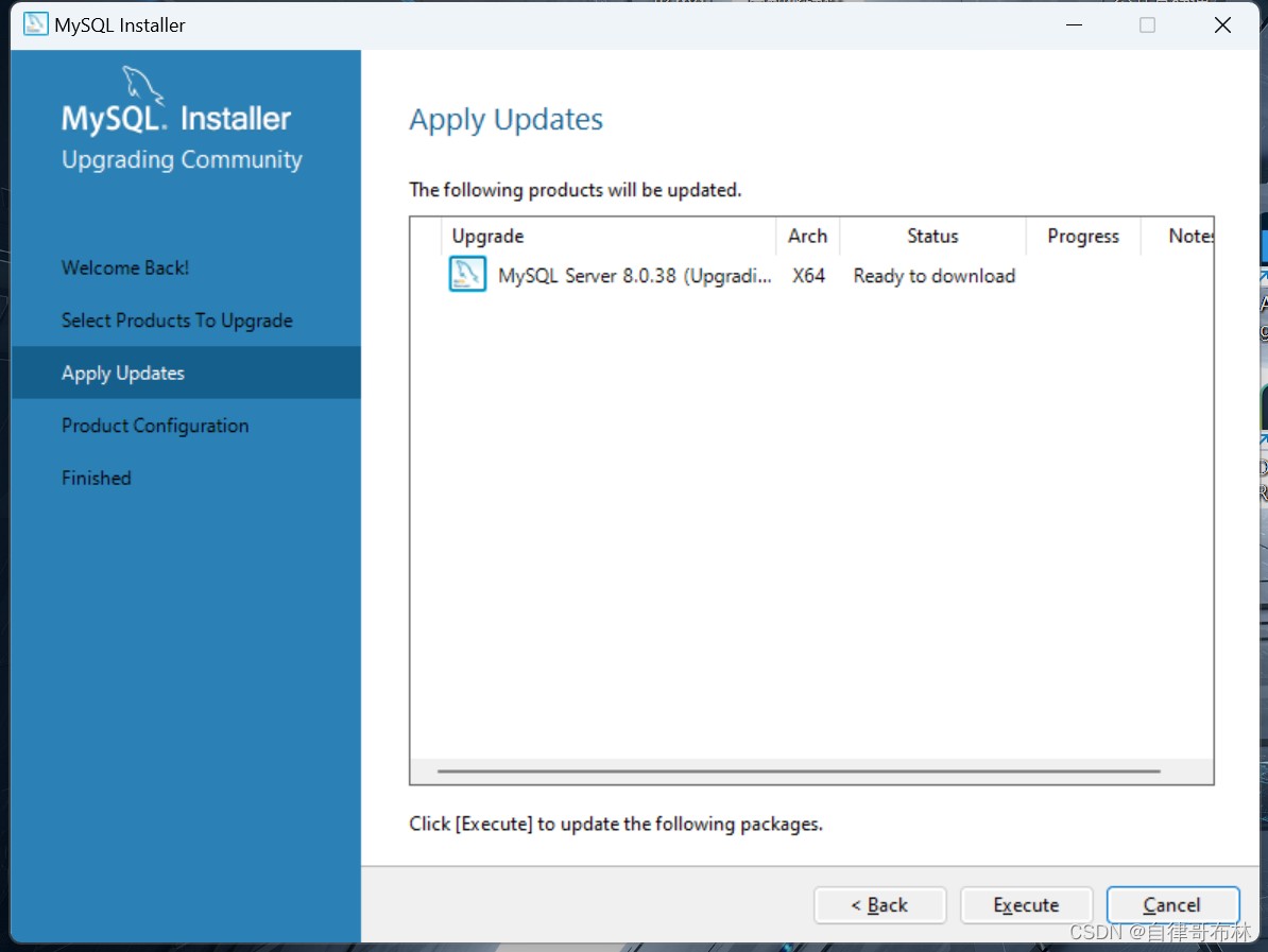 步骤4:在上一步选择好要安装的产品之后,单击“Next”(下一步)进入确认窗口,如图所示。单击 “Execute”(执行)按钮开始安装。