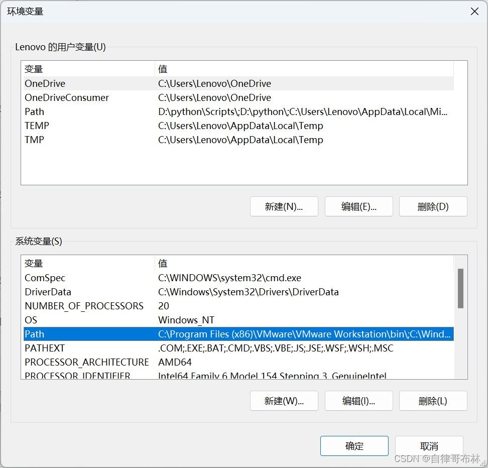步骤4:打开【环境变量】对话框,在系统变量列表中选择path变量。