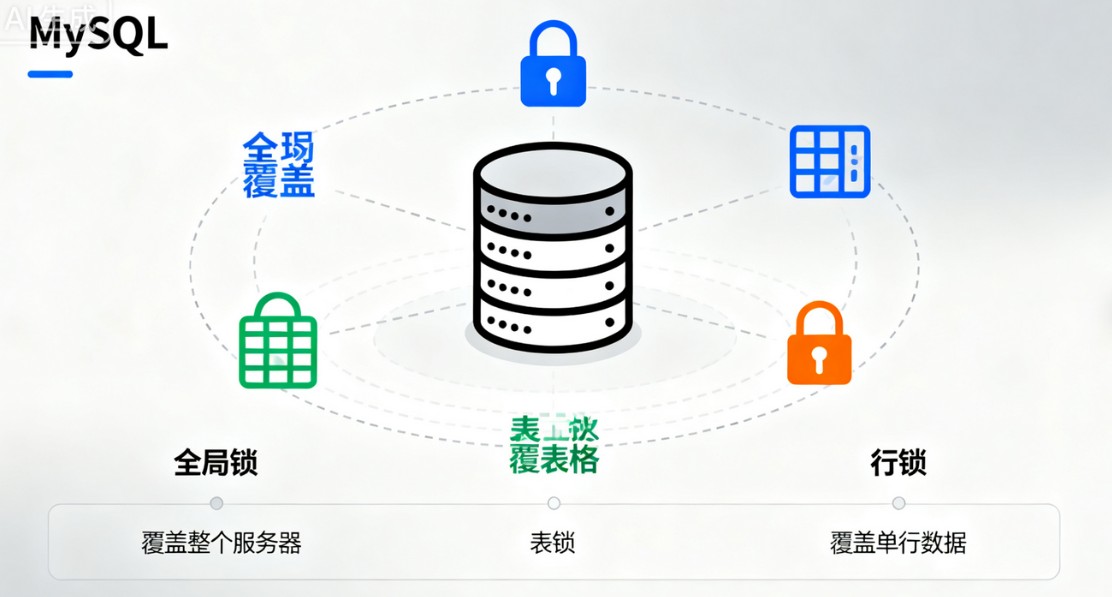 在高并发数据库应用中,锁机制是保障数据一致性和完整性的核心手段。MySQL 作为主流关系型数据库,其锁机制设计尤为关键。本文将围绕 全局锁、表锁、行锁 三种锁类型,深入剖析其原理、使用场景与注意事项,帮助你更好地理解并优化数据库并发性能。