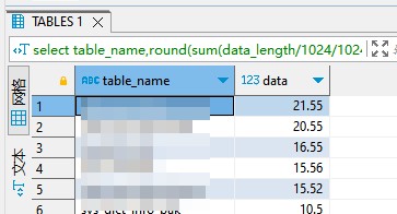 交付项目时,客户需要统计数据库和表占用情况,来评估后续磁盘使用计划。