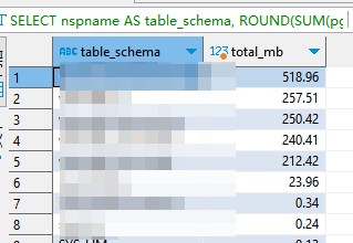 ROUND(SUM(pg_total_relation_size(c.oid)) / 1024.0 / 1024.0, 2) AS total_mb